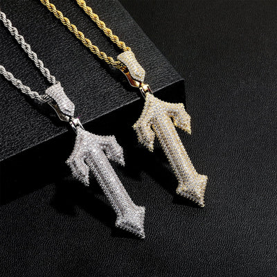 Hip-hop Zircon Sting Cactus Cross Pendant
