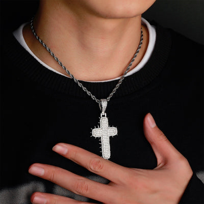 Simple Big Rock Iced Classic Cross Pendant