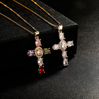 Colored CZ Diamond Cross Pendant