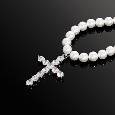 Hip Hop 8-10mm Pearl Necklace Cross Pendant