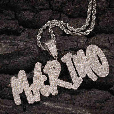 【Custom】Full CZ Diamond Name Tag Pendant