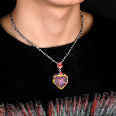 Hip Hop Painting Oil Flame Love Diamond Pendant