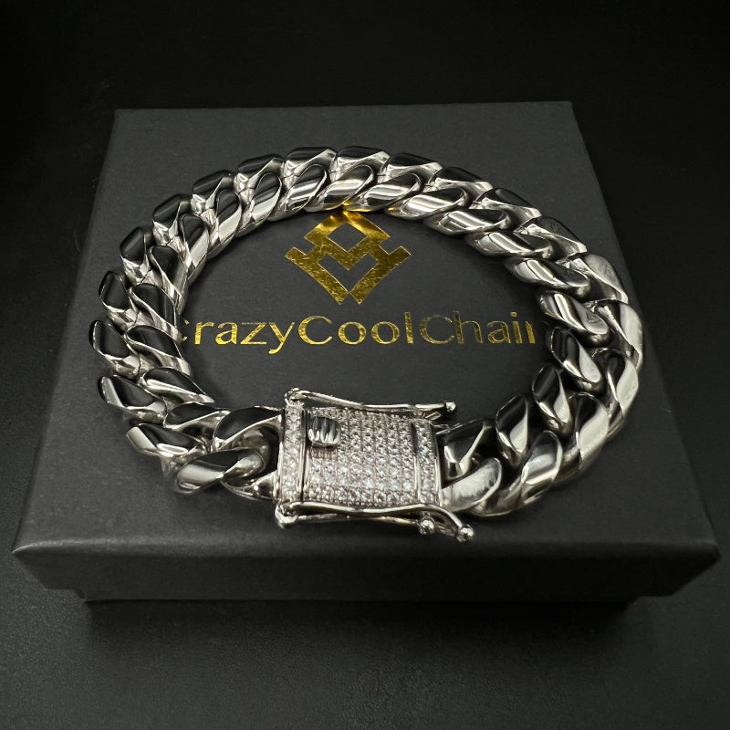 Perfect for wearing alone, this gorgeous Cuban bracelet is a must-have. Handmade with high quality materials and 18K gold plating, this bracelet features a bright and lustrous AAA+ cubic zirconia buckle. If you love a bold accessory, this bracelet is for you. With a wide range of sizes, it’s easy to find the perfect fit.